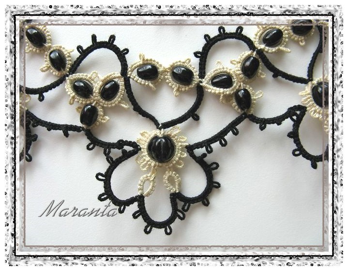 | Frywolitka (frivolite, tatting, occhi, chiacchierino, nupereller, タティングレース )- to rodzaj koronki artystycznej (nazywanej inaczej koronką czółenkową) wykonywanej z cienkiej nici (bawełnianej, jedwabnej, poliestrowej) za pomocą specjalnych czółenek lub igły i szydełka. Dzięki użyciu cienkiej nici, całość wygląda bardzo delikatnie (i to prawdopodobnie wyjaśnia pochodzenie nazwy tej koronki - od łacińskiego frywolus - delikatny, kruchy), choć równocześnie jest niezwykle trwała (znacznie trwalsza niż porównywalna koronka szydełkowa). [źródło: Wikipedia] |