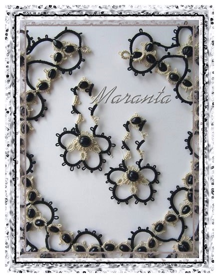 | Frywolitka (frivolite, tatting, occhi, chiacchierino, nupereller, タティングレース )- to rodzaj koronki artystycznej (nazywanej inaczej koronką czółenkową) wykonywanej z cienkiej nici (bawełnianej, jedwabnej, poliestrowej) za pomocą specjalnych czółenek lub igły i szydełka. Dzięki użyciu cienkiej nici, całość wygląda bardzo delikatnie (i to prawdopodobnie wyjaśnia pochodzenie nazwy tej koronki - od łacińskiego frywolus - delikatny, kruchy), choć równocześnie jest niezwykle trwała (znacznie trwalsza niż porównywalna koronka szydełkowa). [źródło: Wikipedia] |