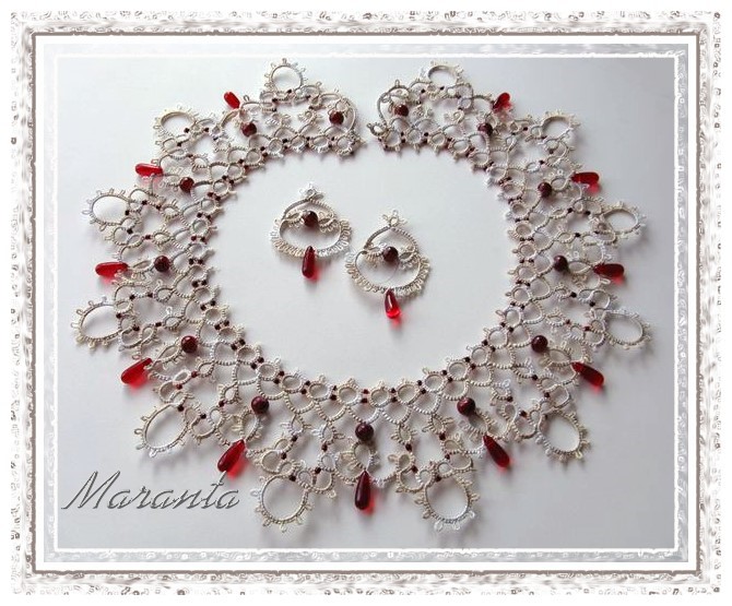 | Frywolitka (frivolite, tatting, occhi, chiacchierino, nupereller, タティングレース )- to rodzaj koronki artystycznej (nazywanej inaczej koronką czółenkową) wykonywanej z cienkiej nici (bawełnianej, jedwabnej, poliestrowej) za pomocą specjalnych czółenek lub igły i szydełka. Dzięki użyciu cienkiej nici, całość wygląda bardzo delikatnie (i to prawdopodobnie wyjaśnia pochodzenie nazwy tej koronki - od łacińskiego frywolus - delikatny, kruchy), choć równocześnie jest niezwykle trwała (znacznie trwalsza niż porównywalna koronka szydełkowa). [źródło: Wikipedia] |