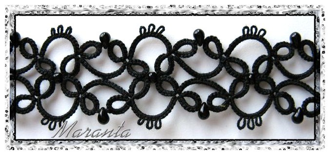 | Frywolitka (frivolite, tatting, occhi, chiacchierino, nupereller, タティングレース )- to rodzaj koronki artystycznej (nazywanej inaczej koronką czółenkową) wykonywanej z cienkiej nici (bawełnianej, jedwabnej, poliestrowej) za pomocą specjalnych czółenek lub igły i szydełka. Dzięki użyciu cienkiej nici, całość wygląda bardzo delikatnie (i to prawdopodobnie wyjaśnia pochodzenie nazwy tej koronki - od łacińskiego frywolus - delikatny, kruchy), choć równocześnie jest niezwykle trwała (znacznie trwalsza niż porównywalna koronka szydełkowa). [źródło: Wikipedia] |