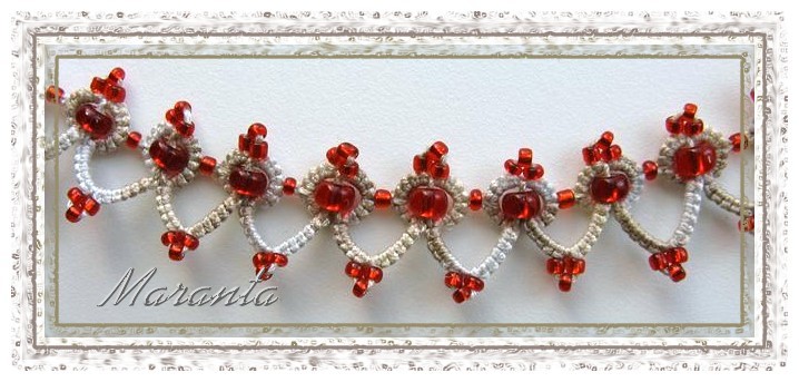 | Frywolitka (frivolite, tatting, occhi, chiacchierino, nupereller, タティングレース )- to rodzaj koronki artystycznej (nazywanej inaczej koronką czółenkową) wykonywanej z cienkiej nici (bawełnianej, jedwabnej, poliestrowej) za pomocą specjalnych czółenek lub igły i szydełka. Dzięki użyciu cienkiej nici, całość wygląda bardzo delikatnie (i to prawdopodobnie wyjaśnia pochodzenie nazwy tej koronki - od łacińskiego frywolus - delikatny, kruchy), choć równocześnie jest niezwykle trwała (znacznie trwalsza niż porównywalna koronka szydełkowa). [źródło: Wikipedia] |