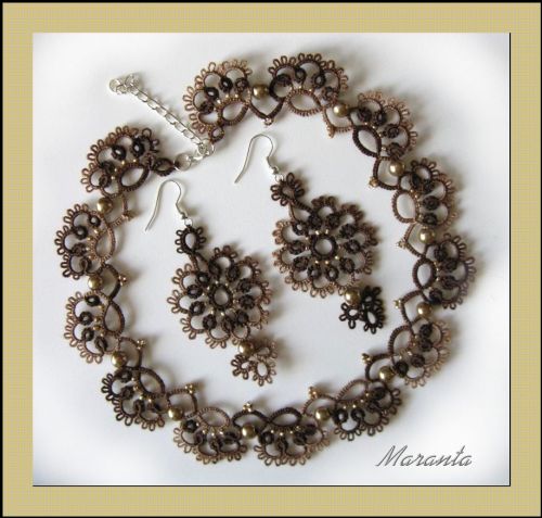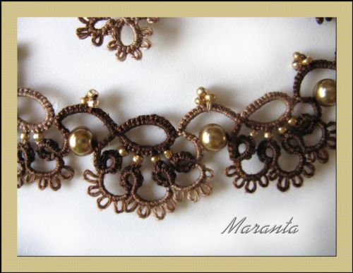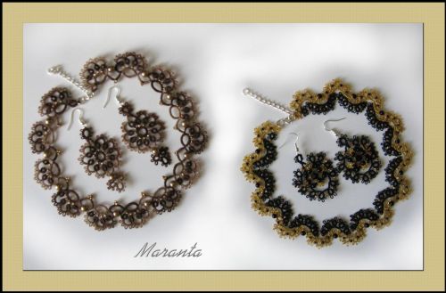 | Frywolitka (frivolite, tatting, occhi, chiacchierino, nupereller, タティングレース )- to rodzaj koronki artystycznej (nazywanej inaczej koronką czółenkową) wykonywanej z cienkiej nici (bawełnianej, jedwabnej, poliestrowej) za pomocą specjalnych czółenek lub igły i szydełka. Dzięki użyciu cienkiej nici, całość wygląda bardzo delikatnie (i to prawdopodobnie wyjaśnia pochodzenie nazwy tej koronki - od łacińskiego frywolus - delikatny, kruchy), choć równocześnie jest niezwykle trwała (znacznie trwalsza niż porównywalna koronka szydełkowa). [źródło: Wikipedia] |
