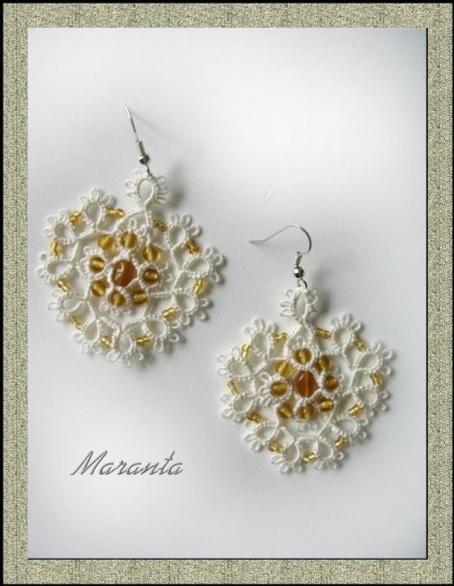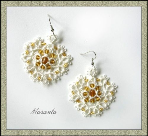 | Frywolitka (frivolite, tatting, occhi, chiacchierino, nupereller, タティングレース )- to rodzaj koronki artystycznej (nazywanej inaczej koronką czółenkową) wykonywanej z cienkiej nici (bawełnianej, jedwabnej, poliestrowej) za pomocą specjalnych czółenek lub igły i szydełka. Dzięki użyciu cienkiej nici, całość wygląda bardzo delikatnie (i to prawdopodobnie wyjaśnia pochodzenie nazwy tej koronki - od łacińskiego frywolus - delikatny, kruchy), choć równocześnie jest niezwykle trwała (znacznie trwalsza niż porównywalna koronka szydełkowa). [źródło: Wikipedia] |