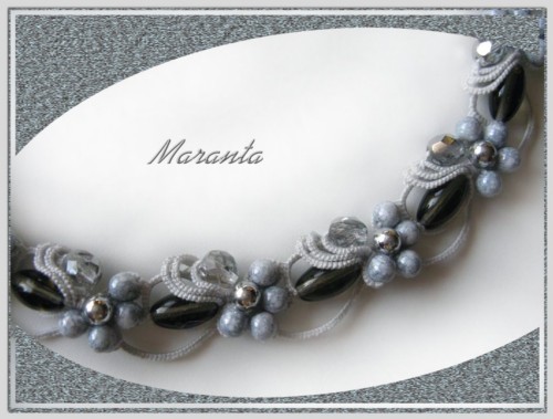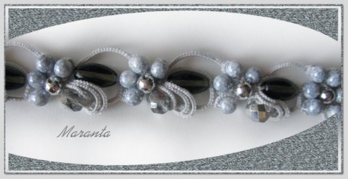| Frywolitka (frivolite, tatting, occhi, chiacchierino, nupereller, タティングレース )- to rodzaj koronki artystycznej (nazywanej inaczej koronką czółenkową) wykonywanej z cienkiej nici (bawełnianej, jedwabnej, poliestrowej) za pomocą specjalnych czółenek lub igły i szydełka. Dzięki użyciu cienkiej nici, całość wygląda bardzo delikatnie (i to prawdopodobnie wyjaśnia pochodzenie nazwy tej koronki - od łacińskiego frywolus - delikatny, kruchy), choć równocześnie jest niezwykle trwała (znacznie trwalsza niż porównywalna koronka szydełkowa). [źródło: Wikipedia] |