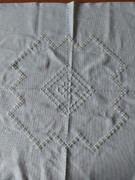 No i zaczęłam. Niestety, nie będzie to bieżnik. Materiały, które mam, to jeden szeroki, ale za krótki, drugi długi, ale za wąski. Te materiały odpowiedniej wielkości są z tych bardzo gęstych, więc bieżnik wyszedłby mały. Teraz więc będzie serwetka z jednym motywem, a jak kupię materiał to będzie bieżnik do kompletu. Na razie mam tyle: