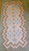 U mnie mały zastój. Skończyłam szyć bieżnik, który szyłam latem przy niepogodzie. Zdążyłam zrobić zdjęcie i już go nie mam. Poszedł w inne ręce. Przyznam się, że pracy było sporo przy nim.