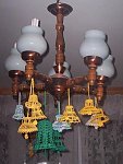 Aniołki, dzwonki, bombki zrobiłam z takich nici, których nazwy mi nic nie mówią (bo jak wcześniej pisałam - nie jestem szydełkowa, tylko odkurzam dzięki wam swoje umiejętności); na etykietach nici były takie nazwy: Altun basak miya, Snehurka, a na jednych był po prostu napis: bawełna.