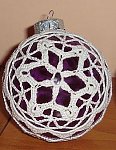 Bombkę robię zwykle tak: kilka oczek łańcuszka, robię kółeczko i tak coś tam motam po drodze robiąc coraz wieksze koło, przykładam do bombki, żeby wiedzieć, czy się za bardzo nie rozpędziłam. Jak już jestem w połowie bombki, to co rządek muszę zabierać oczka, żeby dopasować robótkę do wymiarów danej bombki. I dokąd się da - robię bez nałożenia na plastikową bombkę. Gdy sprawdzę, że jest to ostateczny moment, aby robótkę wepchnąć na bombkę - robię to i już dalej robię do samego końca na bombce. Zwykle muszę na bombce zrobić około 1/3 lub 1/4 części całej bombki.