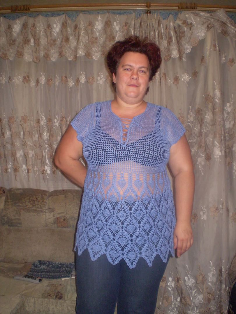 tu jest ta tuniczka o ktorej wam pisałam w poprzednim poście - można wpleść tez wstażeczke pod biust, tam gdzie jest odcięcie, a można sie tez pokusic o inny kolor - teraz zaluje ze zrobiłam ecru a nie czarna - czarna zdecydowanie lepeij prezentowalaby sie na białej bluzce. No, ale bedzie na lato...