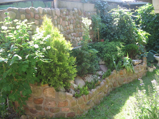 Jolu ten duża kamienna rabata iglaków powstała aby ukryć właśnie paskudny mur wystawiony przez sąsiada widać jeszcze kawałek, ale zamierzamy jeszcze dobudawać dalej grill może z wędzarnią to ukryjemy całość.